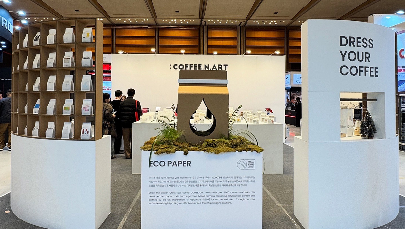 2025 서울카페쇼 - COFFEE.N.ART | 프로젝트. 2025 서울카페쇼 COFF.N.ART 전시부스 행사기간. 2025.11.19 ~ 22 행사장소. 코엑스 D홀 331 소재. 허니콤보드 공정. UV인쇄 / 평판커팅 |